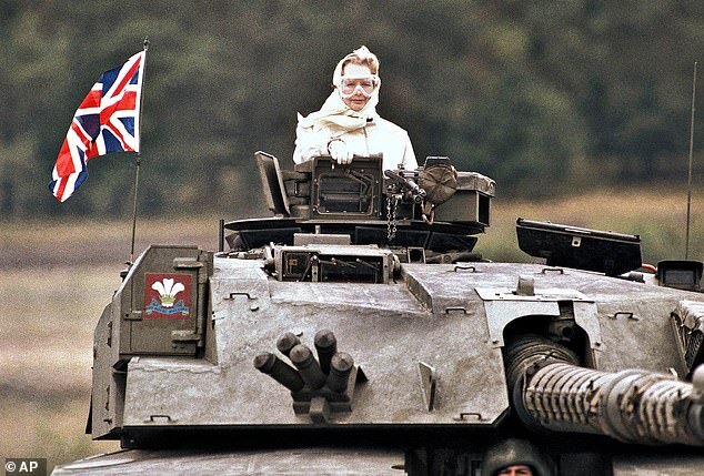We all gasped as Mrs Thatcher appeared in the turret of a British Army Challenger tank, dressed like Lawrence of Arabia in flowing prophetic white garments and a cruel-looking pair of goggles