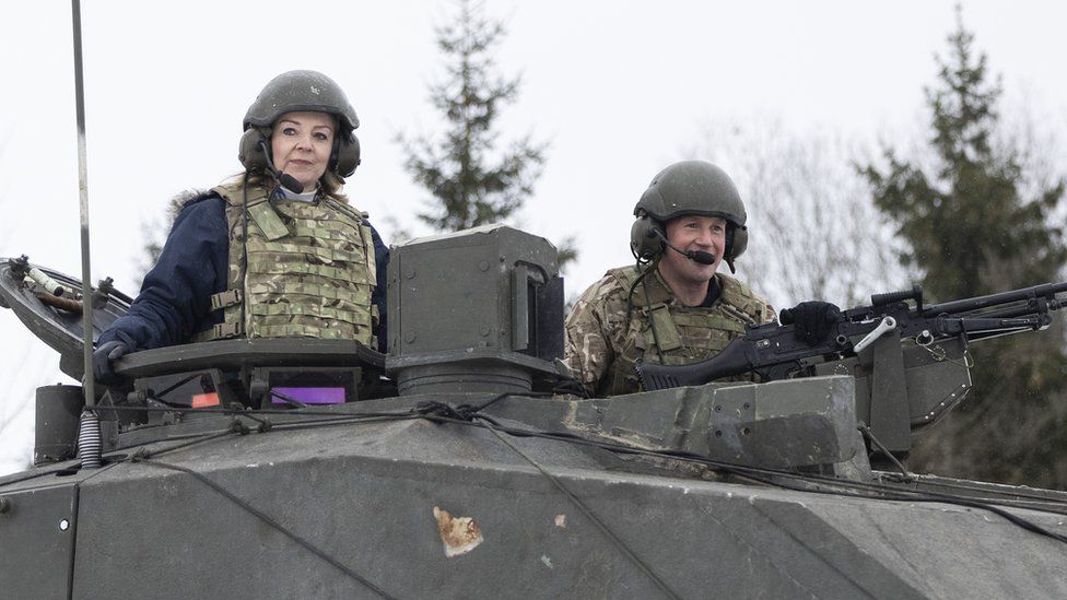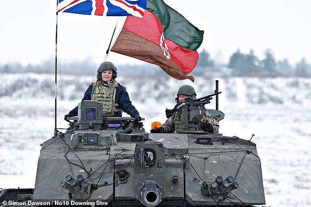 Liz Truss posed for official shots in a tank whilst visiting British troops in Estonia last year