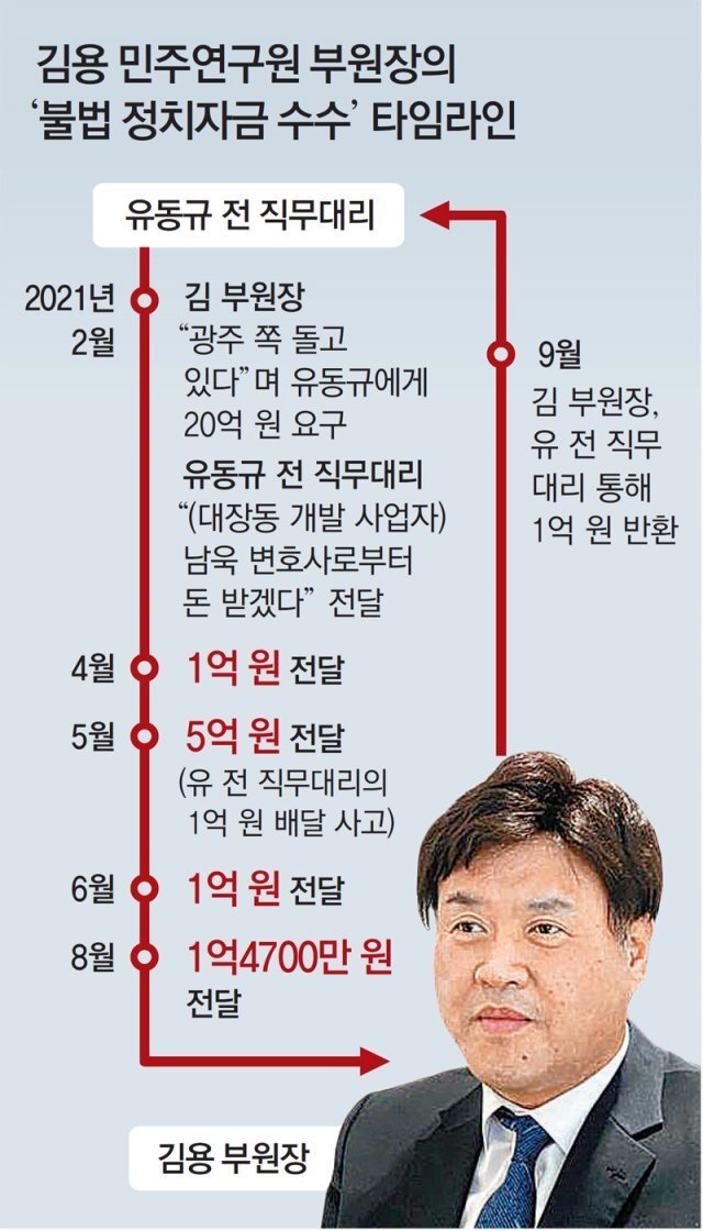 [단독]“김용, 유동규에 ‘1억 - 5억 - 1억 - 1억4700만원’ 4차례 걸쳐 받아”