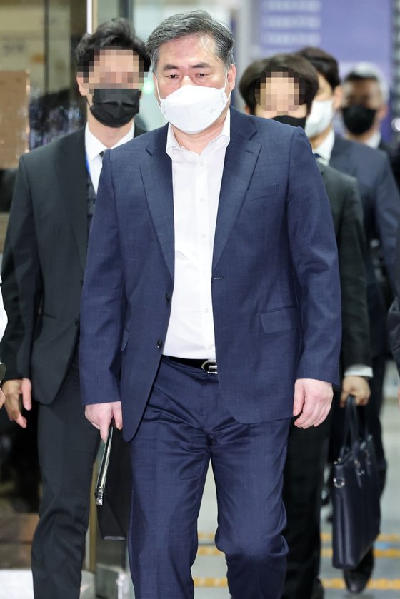 유동규 전 성남도시개발공사 기획본부장이 24일 오전 서울 서초동 서울중앙지법에서 열리는 대장동 개발 사업 특혜 사건 속행 공판에 출석하기 위해 법원 청사로 들어서고 있다. 뉴스1