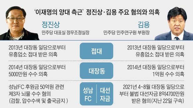 ‘이재명의 양대 측근’ 정진상·김용 주요 혐의와 의혹