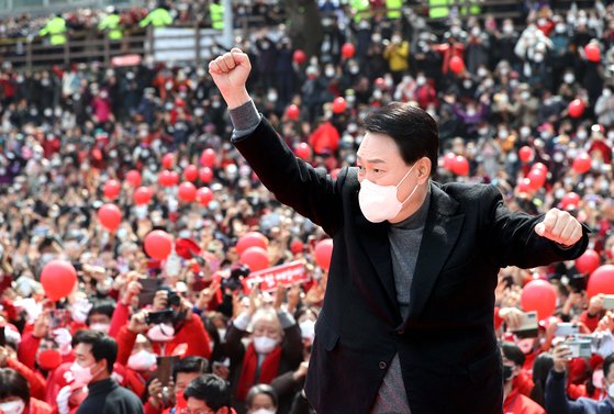 김기현 "與가 발목 못 잡게, 尹 압도적 표차로 당선시켜 달라" 중앙일보 입력 2022.03.09 18:37 업데이트 2022.03.09 19:27 김다영 기자 윤석열 국민의힘 대선 후보가 8일 오후 부산 연제구 온천천 앞 유세 현장에서 지지를 호소하고 있다. 연합뉴스 김기현 국민의힘 원내대표는 제 20대 대통령 선거 본투표일인 9일 윤석열 후보가 압도적인 표차로 당선되지 못 하면 국정운영의 어려움이 있을 것이라며 윤 후보에 대한 투표를 호소했다. 김기현 원내대표는 이날 오후 당 유튜브 채널 '오른소리'에서 진행된 '레드2게더 라이브' 방송에서 "국민 여러분이 기왕 윤 후보를 뽑는다면 화끈하게 좀 밀어주셔야 된다"며 이같이 말했다. 그는 "180석 횡포를 부리는데 익숙해있는 민주당이 또 대통령 발목을 잡..