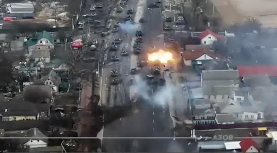 Putin begins to move on Kyiv: Russian tank column is repelled in devastating ambush as Moscow's forces move 'within a few miles' of capital outskirts amid fears Mariupol and Kharkiv bombings are a sign of what is to come Russia attacked Kyiv from west and east Wednesday, as analysts say battle for the capital is now underway Dramatic video showed assault from Brovary, in the east, was ambushed b..
