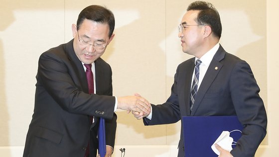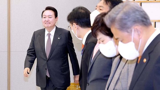 이태원 국조 합의에 부글대는 용산 "정쟁에 尹 끌어들이는 것" 중앙일보 업데이트 2022.11.23 19:28 현일훈 기자 윤석열 대통령이 오는 25일 국민의힘 지도부를 초청해 만찬을 함께 한다. 대통령실은 23일 윤 대통령이 국민의힘 정진석 비상대책위원장과 주호영 원내대표, 김석기 사무총장, 비대위원 등 당 지도부를 만찬에 초청했다. 김대기 대통령 비서실장, 이진복 정무수석 등 대통령실 참모들도 배석한다. 대통령실 관계자는 중앙일보와의 통화에서 “윤 대통령이 동남아 순방을 포함한 외교성과를 공유하고, 내년도 예산안과 민생 법안의 조속한 처리를 당부하는 자리가 될 것”이라고 전했다. 윤석열 대통령이 23일 오후 서울 용산 대통령실 청사에서 열린 비상주 주한 대사 신임장 제정식에 입장하고 있다. 강정현 기..